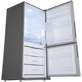 یخچال و فریزر ۲۶ فوت اسنوا مدل SN4-2226SS، محصولی باکیفیت و ظرفیت بالا که برای خانوادههای پرجمعیت و محیطهای بزرگ طراحی شده است. این یخچال با گنجایش ۴۹۷ لیتر، فضای کافی برای نگهداری انواع مواد غذایی و نوشیدنیها فراهم میکند. با ارتفاع ۱۸۰ سانتیمتر و پهنای ۸۲.۱ سانتیمتر، بهراحتی در فضای آشپزخانههای متوسط تا بزرگ جای میگیرد. همچنین، فناوری نوفراست این دستگاه از ایجاد برفک جلوگیری کرده و به همین دلیل نیاز به برفکزدایی دستی ندارد. این مدل یخچال اسنوا به سیستم سرمایش سریع مجهز شده که مواد غذایی تازه را در مدت کوتاهی سرد میکند. بخش یخچال دارای سهطبقه و پنجطبقه در درب بوده و یک کشو برای نگهداری میوه و سبزیها هم تعبیه شده است. همچنین، فریزر با گنجایش ۱۲۵ لیتر، دارای سه کشو بوده و از فناوری انجماد سریع بهره میبرد که با منجمدکردن سریع مواد غذایی، به حفظ تازگی آنها کمک میکند. از دیگر ویژگیهای یخچال و فریزر 26 فوت اسنوا مدل SN4-2226SS میتوان به سیستم اینورتر دیجیتال اشاره کرد که علاوه بر افزایش کارایی، موجب کاهش مصرف انرژی هم میشود. سامانه مدیریت سرمایش و گردش هوای سهبعدی باعث توزیع یکنواخت هوا در تمامی بخشهای یخچال و فریزر میشود و دما را در تمام قسمتها ثابت نگه میدارد. یخچال و فریزر 26 فوت اسنوا مدل SN4-2226SS دارای سطح صدای ۴۳ دسیبل است که به طور نسبی دستگاهی آرام محسوب میشود و مزاحمتی برای ساکنین خانه ایجاد نمیکند. مصرف انرژی این محصول با رتبه A+ از نظر اقتصادی بهصرفه و درعینحال دوستدار محیطزیست است.